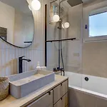 The property features a bathroom with hair dryers and toiletries. You'll also come across a washing machine.